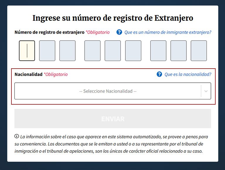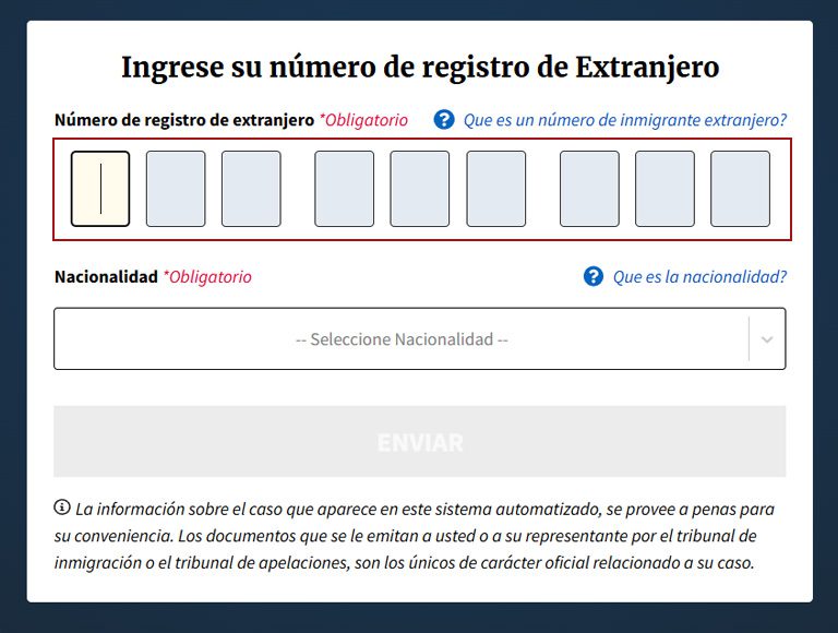 Este identificador único se asigna a personas que no son ciudadanas de Estados Unidos para fines migratorios y lo puedes encontrar en documentos oficiales de inmigración. Si no puede localizarlo, comuníquese con el equipo a cargo de su caso para obtener ayuda.